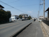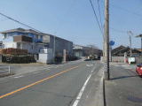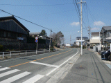 旧道は左にカーブします。左手に、青い東海道道標が有ります。