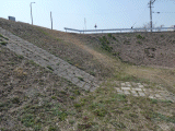 写真右側に見えるコンクリート製タイルの列は、昔堤防上に登る為の階段が設けられていたと思われる部分です。