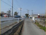 同交差点付近は現在、道路整備中です。将来、道路、道筋が変更される可能性が大です。此処から旧道は細くなり、歩道が消失します。
