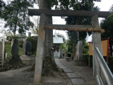 石鳥居を潜ると参道左手には雁堤人柱之碑と人柱供養塔が、右手には掲示板と護所神社社碑があります。参道正面には石灯籠一対を従えたお社が有ります。