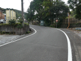 左手に東名自動車道が見えて来ます。左折地点左手前には←静岡市道標が有ります。また前方の道は舗装の悪い上り坂です。