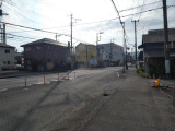 旧道の向かいです。これで迂回路は終了。此処にも(交差点右手前、車道側)旧東海道順路案内板が有ります。